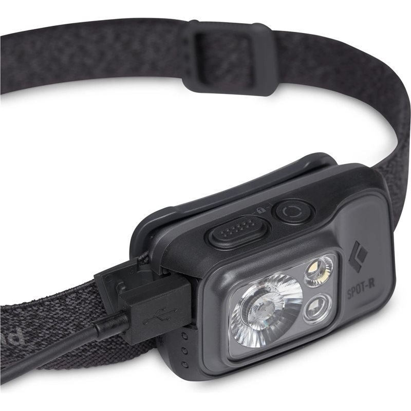 Black Diamond Spot 400-R Headlamp är en utmärkt, uppladdningsbar pannlampa för tekniska användare, som förväntar sig både allround-prestanda och -funktioner men även värdesätter en kompakt storlek. Pannlampan har multifacetterad linsteknologi med optisk effektivitet, och erbjuder upp till 400 lumen och flera olika ljuslägen, inklusive lägen för olika avstånd och ett rött nattläge. Brightness Memory startar lampan på ljusstyrkan den hade innan du stängde av den, utan att först återgå till full styrka, medan Digital Lock Mode säkerställer att lampan inte går igång av misstag i din ryggsäck eller ficka. PowerTap-teknologi tillåter dessutom omedelbar växling mellan maxläget och dimmat ljus. Vattenklassningen IP67 innebär att lampan fortsätter fungera även på 1 meters djup i upp till 30 minuter*. Det återvunna, elastiska pannbandet har en Repreve-fiberkonstruktion, som känns skönt mot huden. Pannlampan drivs av ett integrerat, uppladdningsbart 1500 mAh Li-ion-batteri, och har en micro-USB-port för laddning. En integrerad batterimätare visar kvarvarande batterimängd i procent.