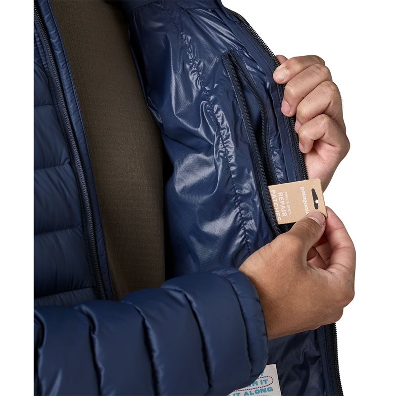 Patagonias Men's Down Sweater dunjackan erbjuder en perfekt kombination av lättviktig värme och väderskydd, vilket gör den till ett utmärkt val för en mängd olika aktiviteter. Jackan är utrustad med ett slitstarkt yttertyg tillverkat av NetPlus® 100% återvunnen nylon ripstop, som är framtaget från återvunna fiskenät för att bidra till minskad plastförorening i haven. Yttertyget är även behandlat med en hållbar vattenavvisande finish (DWR) som är fri från PFC-kemikalier, vilket gör att jackan står emot lätt regn och vind, samtidigt som den håller dig torr och bekväm.