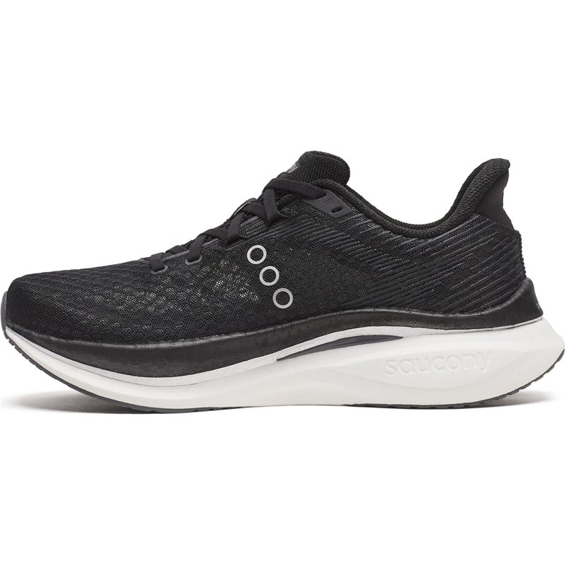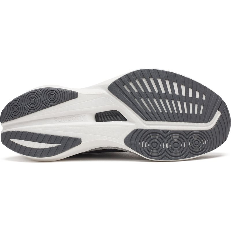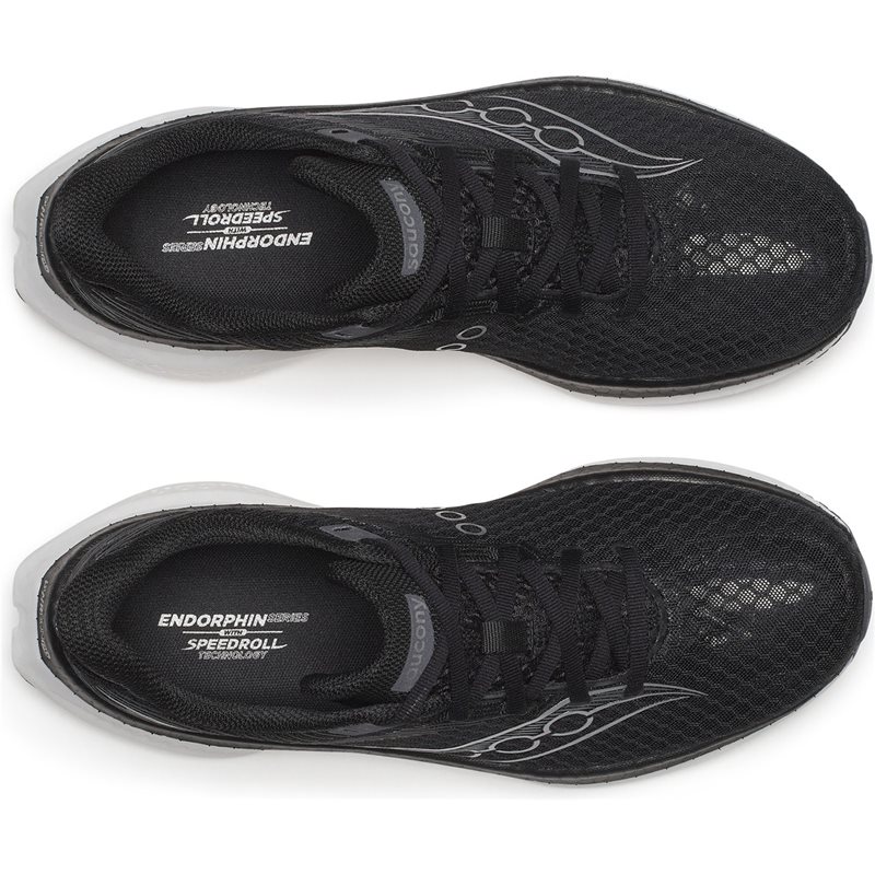 Plattan är dessutom vingformad vid fotvalvet för att ge extra stöd vid hög belastning. Ovandelen har en integrerad plös som omsluter foten för en säker och bekväm passform. Innersulan bygger på Sauconys nya SRS-koncept (Super Responsive Sockliner), vilket ger extra dämpning och studs närmast foten – för en följsam och energifylld löpupplevelse.