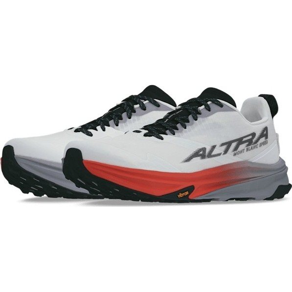 Ta med snabbheten till nästa träningspass. Med en prestandafokuserad mellansula och greppvänlig yttersula kan du flyga fram på stigen med självförtroende. Mont Blanc Speed har en lätt och responsiv mellansula tillverkad med rim- och kärnkonstruktion. Upplev komfort med Altra EGO™ MAX i kanten och få förbättrad prestanda med Altra EGO™ PRO-skum i kärnan. Med Vibram® Litebase för att minska yttersulans vikt och Vibram® Megagrip för grepp på både våta och torra underlag, får du hjälp att hålla dig fast på alla stigar. Det finns gott om utrymme för tårna att röra sig fritt, med ett säkert mellanfotsstöd och noll drop, vilket möjliggör naturlig rörelse. En insydd TPU StoneGuard™ ger skydd under foten på stenig terräng, medan en sydd och vänd krage- och plöskonstruktion är designad för lättviktig komfort. Vill du lägga till lite snabbhet i nästa traillöpning? Du vet vad du ska göra. Det står ju i namnet!