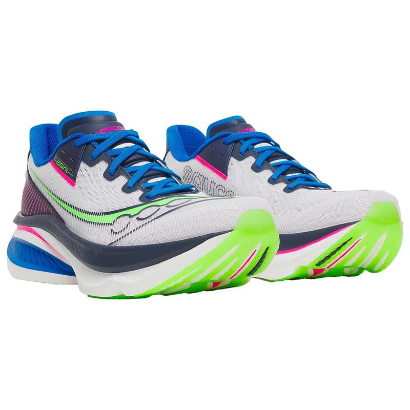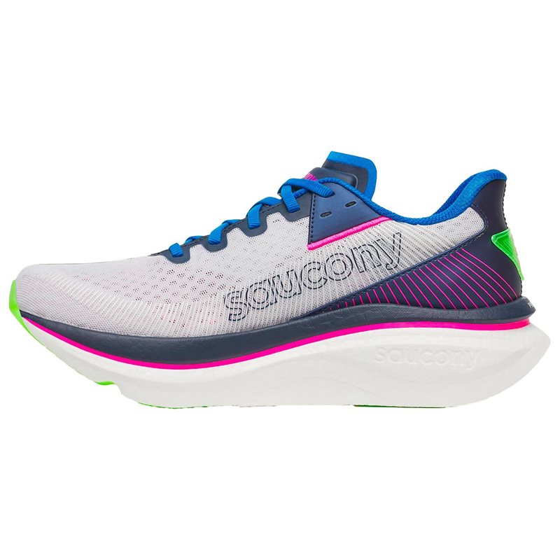 Endorphin Azura är en högpresterande löparsko för män från Saucony, skapad för löpare som vill kombinera fart, dynamik och kontroll. Skon är utrustad med ett klassiskt snörningssystem som ger en säker och individuell passform, medan den innovativa Speedroll-teknologin underlättar stegövergångarna och ger ett mjukare, mer effektivt löpsteg.