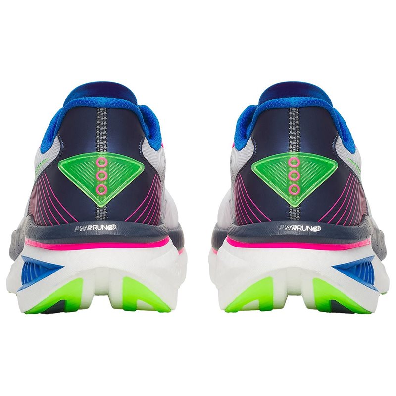 Mellansulan i PWRRUN PB – en unik blandning av Pearl Foam och Pebax® – levererar responsiv dämpning med imponerande 88 % energiåtergång, samtidigt som den bibehåller låg vikt och hög hållbarhet. Yttersulan i XT-900-gummi ger utmärkt slitstyrka och stabilt grepp på en mängd olika underlag, vilket gör skon pålitlig under alla typer av löppass.