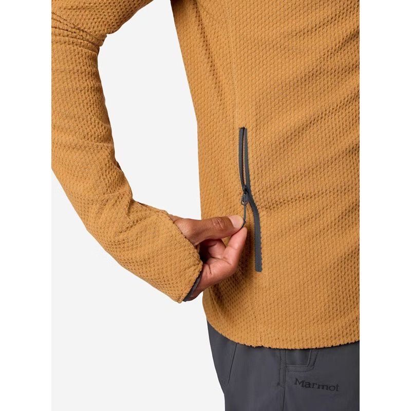 - Unikt rutmönstrat fleecemönster skapar luftflödeskanaler som ökar andningsförmågan, fångar värme och minskar volymen för lager-vänlig rörlighet och temperaturreglering vid hög ansträngning