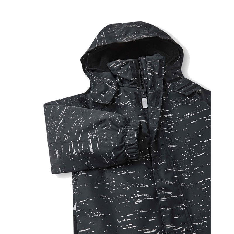 Det släta fodret gör overallen lätt att ta på och av, och den avtagbara, justerbara huvan skyddar mot vind samtidigt som den är säker vid lek – den lossnar enkelt om den fastnar. Resårmuddar, blixtlåsfickor och justerbara detaljer ger en bekväm och flexibel passform.